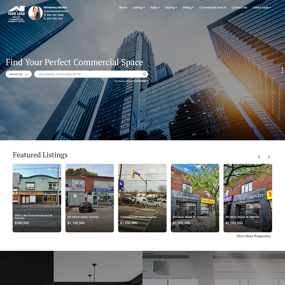 Class: Premium Premium themes are an additional $4.95/m. This grants you access to ALL Premium website designs that add a modern spin to your real estate website. Plus, you can jump from one theme to another.The ELEGANT Commercial Real Estate Agent website design, offered in a Light theme, features a sleek, modern layout with high contrast and striking visual elements. Designed to showcase your expertise in commercial property sales and leasing, it offers a professional yet approachable user experience. High-resolution property imagery enhances the presentation, reflecting your success and professionalism with a sense of refined confidence.