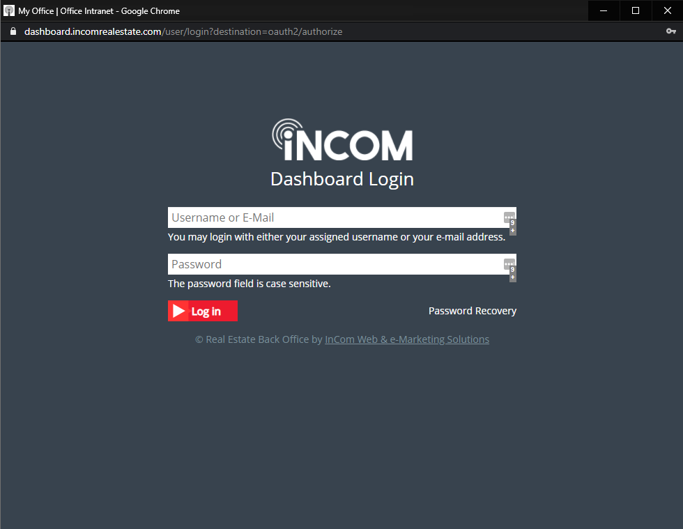 You’ll now be asked to log into your iNCOM account (unless you are already logged in). Enter your username and password to login.